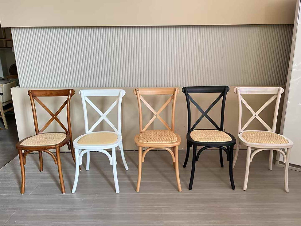 French Country Style Rattan Seat Solid Oak Wood Cross Back Dining Chair